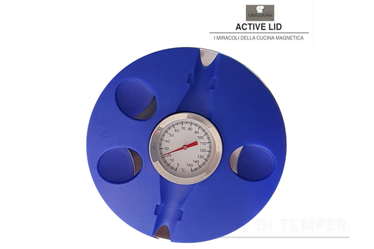 –  Pomolo Magnetico da utilizzare in combinazione con i coperchi composto da un termometro estraibile     per controllare la temperatura (anche interna) del cibo in cottura